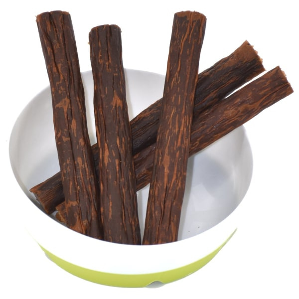Patykosy z jelenia to składające się w 98% z mięsa mięśniowego kiełbaski od firmy bOOmerang. Takie naturalne przysmaki to podstawa psiej diety, podając psu pokarmy uzupełniające możemy dostarczyć różne wartości odżywcze wspierające jego organizm. Wołowina zawiera niewiele tłuszczu z czego połowę stanowią nienasycone kwasy tłuszczowe (doskonałe źródło łatwo dostępnej energii dla psów). Po wołowinę sięgamy gdy chcemy naszemu psu dostarczyć kreatyny (zwiększa możliwości wysiłkowe), L-karnityny (przyspiesza metabolizm i regenerację). Mięso to posiada również kwas linolowy i alaninę, podtrzymującą masę mięśniową, oraz żelazo i witaminy z grupy B,A i E. Patykosy posiadają praktyczny kształt co sprawia, że są dobrym wyborem na szkolenie komend, przekąskę w ciągu dnia, czy wsparcie psa w nowych sytuacjach (żucie pomaga psu się wyciszyć i uspokoić).