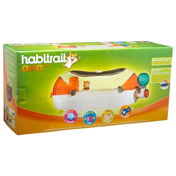 Jeśli opiekujesz się chomikami, być może pojawiło Ci się w głowie pytanie "W jakich warunkach żyją chomiki w przyrodzie?". Taka wiedza znacząco ułatwia przygotowanie zwierzętom odpowiednich warunków w domu, by czuły się równie dobrze jak w naturalnym środowisku. W naturze każdy osobnik kopie swoje własne norki i tunele, dlatego zestawy Habitrail Ovo zbudowane w oparciu o wieloletnią reputację Habitrail w zakresie innowacyjnych projektów siedlisk dla chomików, zapewnia wygodną przestrzeń życiową dla chomików. Habitrail ovo loft to główna część w której zwierzak wykonuje podstawowe czynności życia codziennego. Zestaw składa się z klatki z nieprzezroczystym białym dnem, pomarańczowych drzwi szybkiego dostępu, przezroczystej kopuły ze srebrnymi stalowymi drzwiami, nieprzezroczystego pomarańczowego koła do biegania, schodów, miski do karmienia, turkusowego bidonu na wodę, labiryntu z tektury do żucia, 2 okienek, i 1 złącza blokady. Klatkę możemy modyfikować i powiększać o tunele, labirynty i inne główne siedliska, które dzięki złączom blokującym możemy w szybki i łatwy sposób łączyć. Oparte na szeroko zakrojonych badaniach behawioralnych, obudowy i akcesoria Habitrail OVO zostały zaprojektowane w celu poprawy jakości życia chomika.