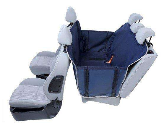 - zamek umożliwia jednoczesne przewożenie psa wraz z pasażerem - poprzez odpięcie części maty z przedniego fotela, aby pasażer mógł usiąść obok psa.