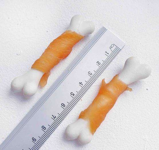 Naturalne kości wapienne owinięte soczystym mięsem z kurczaka - doskonała przekąska między posiłkami pełna wartości odżywczych.