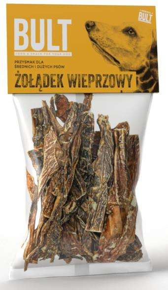 Żołądek wieprzowy marki BULT to naturalny gryzak, który doskonale wspomaga higienę zębów psa, ale także hamuje osadzanie się kamienia nazębnego oraz wzmacnia mięśnie żuchwy. Optymalna wilgotność przekąski, uzyskana dzięki starannemu procesowi suszenia, czyni z niej wspaniały gryzak dla psów w każdym wieku. Proces gryzienia łączy się z masażem dziąseł, co sprawia czworonogowi wyjątkową przyjemność. Żołądki wieprzowe to przekąska o intensywnym aromacie, której żaden pies nie będzie w stanie się oprzeć.