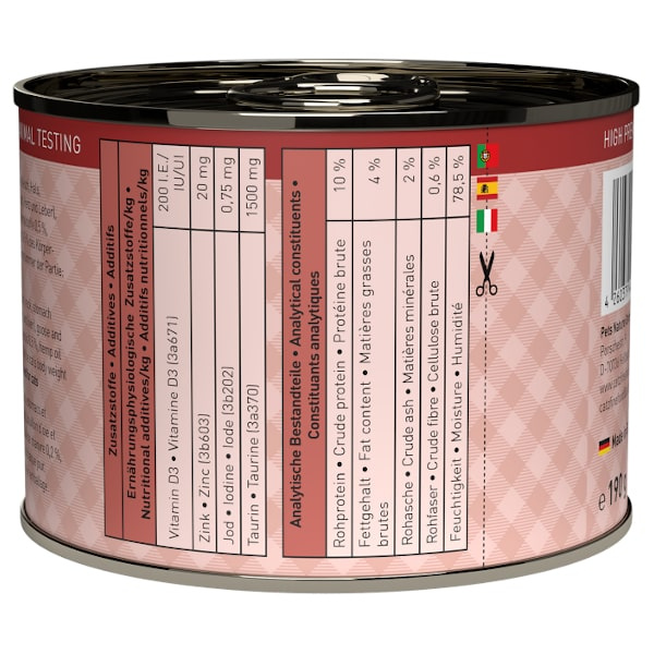 Gęś z indykiem z serii Ragout to idealny wybór dla wszystkich kocich smakoszy, nawet tych najabardziej wybrednych. Posiłek ten został przygotowany w taki sposób, że jest odpowiednikiem smakowym i zapchowym świeżo ugotowanego jedzenia. Starannie wyselekcjonowane mięso od Niemieckich dostawców zostało połączone ze smakowitym sosem, który kociaki uwilebiają. Żywność ta nie zawiera w swoim składzie dodatku cukru, zbóż ani sztucznych dodatków, takich jak wzmacniacze smaku. Dostępna w kilku ciekawych kompozycjach, które wszystkie możecie już zamówić z naszej Mega oferty. Specjalnie dobrane składniki w Catz Finefood Ragout, takie jak wielbłąd, dzika kaczka, omułek i kangur zapewniają wyjątkowe doznania podniebieniu każdego kociego smakosza.