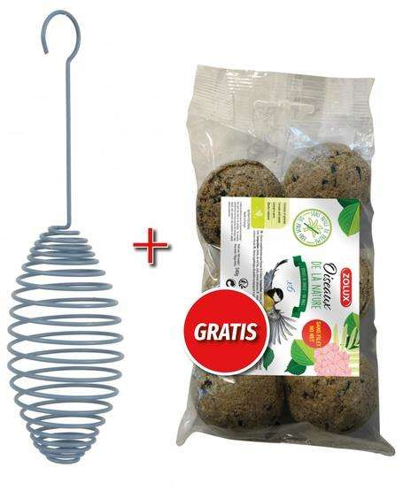 Przed włożeniem do niej kuli usuń siatkowe opakowanie. Dlaczego stosować spiralę lub inny karmnik na kule? Ponieważ samotnie wisząca kula w siatkowym opakowaniu może stanowić niebezpieczeństwo zaplątania się ptaka - staraj się wieszać kule tam, gdzie ptaki mają gdzie usiąść.