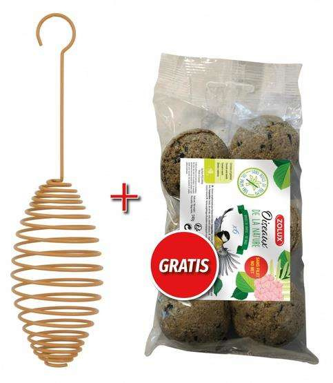 Przed włożeniem do niej kuli usuń siatkowe opakowanie. Dlaczego stosować spiralę lub inny karmnik na kule? Ponieważ samotnie wisząca kula w siatkowym opakowaniu może stanowić niebezpieczeństwo zaplątania się ptaka - staraj się wieszać kule tam, gdzie ptaki mają gdzie usiąść.