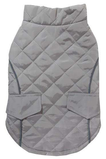 Ubranko z atrakcyjnym designem i odblaskowymi elementami. Pikowanie w kratkę oraz ozdobne atrapy kieszonek.