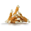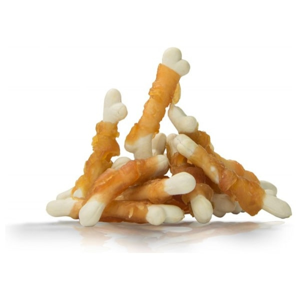 Pause Snack to seria pyszny przekąsek dla psa od Hau&Miau. Kostki wapienne z kurczakiem to połączenie kostki wapiennej z mleczanu wapnia z mięsem z kurczaka. Wapń należy do najważniejszych jonów organizmu, współtworzy tkankę kostną, zmniejsza przepuszczalność ścian naczyń krwionośnych, dzięki czemu wykazuje działanie przeciw wysiękowe, przeciwobrzękowe, przeciwalergiczne i przeciwzapalne. Kurczak to lekkostrawne mięso to również jest źródłem między innymi wysokiej jakości białka. Zawiera nienasycone kwasy tłuszczowe, niezbędne dla rozwoju mózgu i układu nerwowego. Mięso to jest niskotłuszczowe, co oznacza, że świetnie sprawdza się dla psów o wrażliwym układzie pokarmowym, z nadwagą czy otyłością. Jest to też mięso bogate w żelazo. Przysmak wyprodukowany przy pomocy nowoczesnych metod pozwalających zachować jak najwięcej wartości odżywczych, naturalny smak i zapach. Pożywne kęsy są idealne do uzupełniania codziennej diety, sprawdzają się podczas treningów i stanowią doskonałą zabawę. Do tego zaspokajają naturalną potrzebę gryzienia u psów.