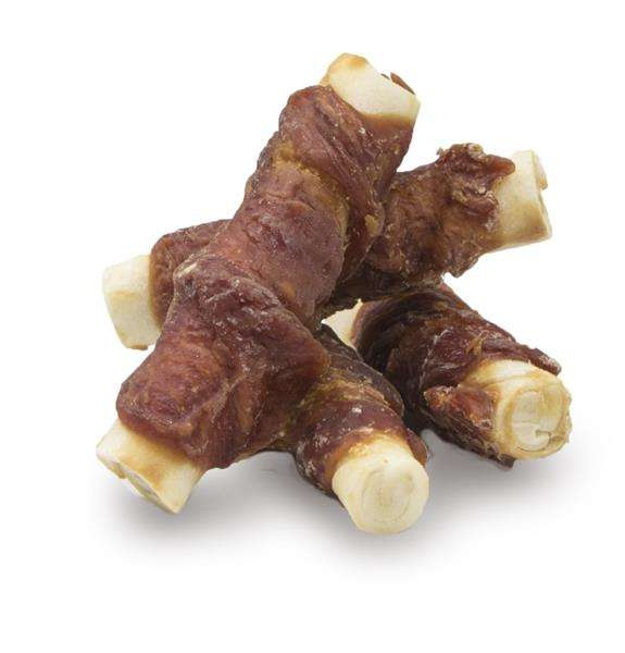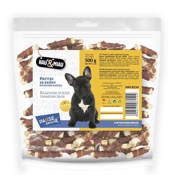 Pausesnack przysmak dla psa, patyki ze skóry oplecione kaczką 500g