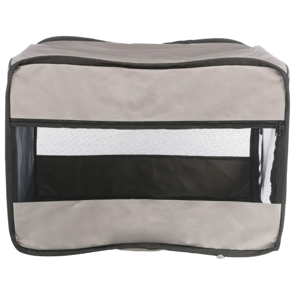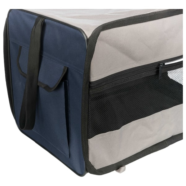 Trixie Soft Kennel Twister to kontener do krótkiego umieszczenia w nim psa. Poręczna, składana, miękka klatka kenelowa dla psów z szerokim zastosowaniem. Idealna w trasę, hotelu, na wystawy, przy nauce zostawania w domu, dla szczeniaka, czy jako bezpieczne miejsce w domu. Szybki montaż i składanie do małej torby rozwiążą kłopot z miejscem w czasie podróży. Od boku mamy otwieraną kieszonkę przez którą możemy psa pogłaskać lub podać coś do jedzenia, przednia część wyposażona jest w otwierany na suwak otwór wejściowy, który można zaczepić na rzep by klata była stale otwarta. W zestawie są metalowe śledzie do montażu transportera do ziemi.