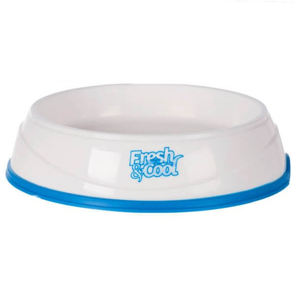 Trixie Fresh & Cool to miska chłodząca z tworzywa sztucznego, idealna do wody lub karmy. W środku miski znajduje się wkład, który wystarczy umieścić na kilka minut w zamrażarce, po czym z powrotem przełożyć do miski, aby ochłodzić jej zawartość na długi czas. Brzeg podstawy został pokryty solidnym, antypoślizgowym materiałem termoplastycznym (TPR). Można używać również bez wkładu, zastępując zwykłą miskę. Produkt nadaje się do mycia w zmywarce.