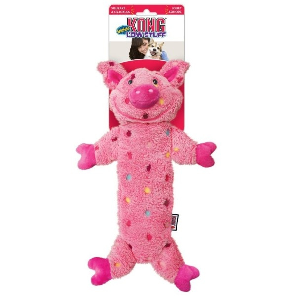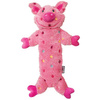 Ten płaski pluszak, idealny do tarmoszenia i potrząsania, to propozycja dla psiaków preferujących zabawki szeleszczące i piszczące. W brzuszku i kończynach świnki umieszczono szeleszczące elementy i minimalną ilość poliestrowego wypełnienia (w razie rozerwania będzie mniejszy bałagan w mieszkaniu). Piszczałka znajduje się w głowie świnki - jej dźwięk zachęca zwierzę do zdrowej aktywności. Płaski, lekko usztywniony tułów sprawia, że Twój pupil będzie nosił pluszaka w zębach, potrząsał, targał, wypuszczał, łapał i podrzucał. Świnka nie posiada wystających plastikowych elementów - takich jak oczka czy nosek - które mogłyby zostać połknięte.