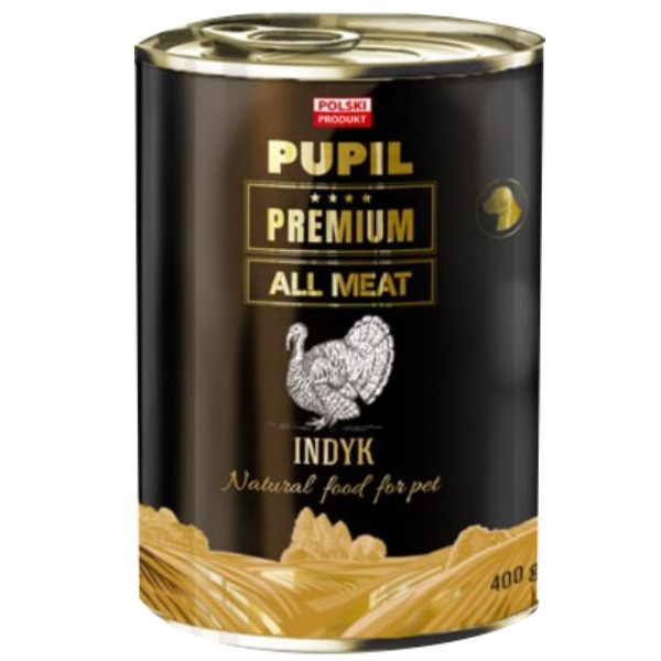 Pupil Premium All Meat Gold kaczka indyk to lekkostrawny, zrównoważony i pełnoporcjowy posiłek stworzony z myślą o dorosłych psach. Receptura bogata w białko zwierzęce oraz dobrej jakości tłuszcze, jest gwarancją zdrowia i witalności. All Meat Gold to danie z wysoką zawartością mięsa indyczego poddanego delikatnej obróbce, która zapewnia doskonałą strawność oraz bardzo dobrą przyswajalność składników odżywczych. Chude mięso z indyka jest lekkostrawne, a przy tym posiada wysoką wartość odżywczą. Jest także cennym źródłem aminokwasów, magnezu, potasu, cynku oraz witamin z grupy B wspierających układ odpornościowy.