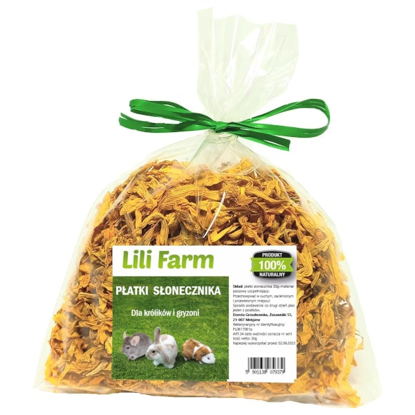 Płatki słonecznika dzięki swojemu wyrazistemu kolorowi i zawartym składnikom odżywczym, stanowią ciekawe urozmaicenie diety gryzonia. Zawarte w płatkach związki zwiększają wydzielanie soku żołądkowego i usprawniają procesy trawienia, jak i przyswajania pokarmów. Płatki można podawać w celu poprawy skóry i sierści.