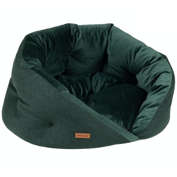 Legowisko kokon amiplay Siena to doskonały wybór dla właścicieli szczeniąt i mniejszych pupili. Duża grubość poduchy wypełnionej specjalną mieszanką syntetycznego puchu i pianki zapewnia miękkość oraz bardzo dobrą izolację termiczną. Wyśmienicie sprawdzi się dla psów, które w trakcie snu poszukują bezpiecznego, osłoniętego miejsca. Kokon cechuje się także dobrym wykorzystaniem przestrzeni, oferując dużą powierzchnię do wypoczynku dla zwierzęcia przy niewielkich rozmiarach zewnętrznych. Legowiska Siena stworzone zostały z myślą o pieskach małych ras i szczeniętach, które lubią wtulić się w posłanie. To właśnie dla nich powstały podwyższone brzegi w formie daszku, które dają poczucie bliskości i otulenia. Seria amiplay Siena wykonana jest z materiałów meblowych zapewniających niezwykłą wygodę oraz trwałość, a ich spód to tkanina antypoślizgowa, która zapobiega przesuwaniu się legowiska i ogranicza chłonięcie wilgoci od podłoża. Wypełnione jest dużą ilością specjalnej mieszanki puchu silikonowego, odpornej na odkształcenia, dzięki czemu legowisko będzie służyło psu przez długi czas. Kolekcja Siena jest nie tylko elegancka, ale również bardzo wygodna w czyszczeniu. Tkanina Velvet, z której wykonane zostało legowisko posiada znak Cleanaboo, którym oznaczone są specjalne materiały o właściwościach ograniczających wchłanianie płynów do wnętrza. Dzięki temu innowacyjnemu rozwiązaniu, każdy rozlany na materiale płyn formuje się w krople i nie przenika w głąb materiału. Sprawia to, że nawet najtrudniejsze plamy można usunąć tylko suchą ściereczką. Oznaczenie PETPROOF zaświadcza posiadanie certyfikatu zgodności z normą odporności na zadrapania wydawanego przez Instytut Włókiennictwa. Oznacza to, że tkanina jest wyjątkowo odporna na uszkodzenie przez pazury naszego pupila.