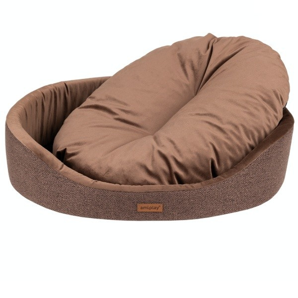 Firma amiplay wychodzi naprzeciw oczekiwaniom klientów, którzy chcą zapewnić swemu pupilowi jak największy komfort a jednocześnie korzystać z produktów trwałych i eleganckich. Nowe kolekcje tworzone są w oparciu o aktualne trendy z uwzględnieniem jakości materiałów i perfekcyjnego wykończenia. Efektem tego jest nowa seria legowisk Siena, wykonanych z materiału typu Velvet. Legowisko owalne amiplay Siena to doskonały wybór dla właścicieli mniejszych pupili. Duża grubość poduchy wypełnionej specjalną mieszanką syntetycznego puchu i pianki zapewnia miękkość oraz bardzo dobrą izolację termiczną. Wyśmienicie sprawdzi się dla psów, które w trakcie snu poszukują bezpiecznego, osłoniętego miejsca. Cechuje się także dobrym wykorzystaniem przestrzeni, oferując dużą powierzchnię do wypoczynku dla ulubieńca przy niewielkich rozmiarach zewnętrznych. Legowiska Siena stworzone zostały z myślą o pieskach małych i średnich ras, które lubią wtulić się w posłanie. To właśnie dla nich powstały podwyższone brzegi, które dają poczucie otulenia.