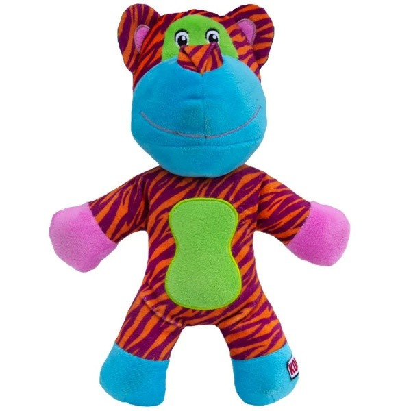 Kong Switcheroos to dwie postacie w jednej zabawce, co zapewnia podwójną zabawę z przystawaniem i przytulaniem. Głęboki pisk w brzuchu i dodatkowe piski o wyższym tonie pobudzają instynkty psów i wydłużają czas zabawy. Ta zabawka na wiele sposobów i idealnie dopasowana do chwytania i potrząsania zapewnia ciągłą zabawę.