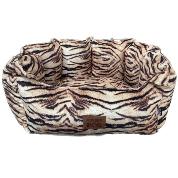 Produkty Golden Dog cechują się wysokiej jakości legowiskami dla psów i kotów. Wybierane są u nich najlepsze tkaniny i wypełnienia zapewniające zwierzętom ciepło i komfort. Wszystkie produkty Golden Dog szyte są z najwyższą starannością, dając trwałość i niezawodność. Legowisko Korona Lux wykonane jest z tkaniny poliestrowej typu aksamit. Legowisko składa się z boków i spodu wypełnionych wkładami z granulatem piankowym. Posłanie posiada zdejmowalny pokrowiec, który jest na zamku błyskawicznym. Umożliwia to wyczyszczenie samego pokrowca w temp. 30 stopni. Dno wykonane jest z włókniny polipropylenowej.