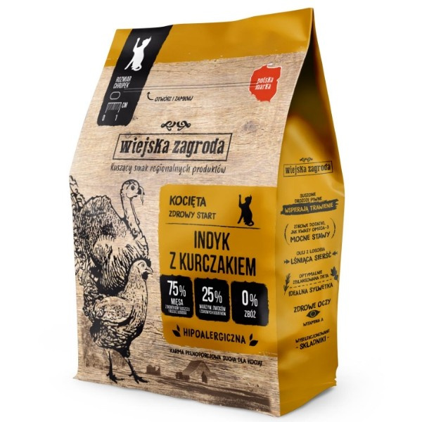 Zestawienie chudego i lekkostrawnego indyka z bogatym w białko kurczakiem to propozycja stworzona z myślą o rosnącym mruczku. Drób to doskonałe źródło ważnej w diecie kota tauryny, która sprzyja odpowiedniemu rozwojowi maluszka. Mięso indyka oraz kurczaka są pełne cennych witamin i minerałów, które wpływają na zdrowy i harmonijny rozwój każdego kociaka.