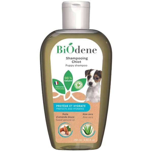 Szampon Francodex BiOdene dla szczeniąt posiada ekologiczny olejek ze słodkich migdałów: nawilża skórę i sierść, a także wzbogacony jest o betainę, która wzmacnia wrażliwą skórę szczeniąt.