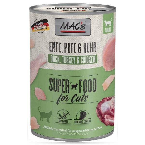 MAC's to szczególnie smaczna i wyjątkowo aromatyczna, pełnoporcjowa mokra karma o wysokiej zawartości mięsa dla dorosłych kotów. Zapewnia wszystkie substancje odżywcze oraz witaminy i minerały, niezbędne do prawidłowego funkcjonowania całego organizmu Twojego pupila. Dodatek żurawiny ma pozytywny wpływ na układ moczowy oraz wspiera odporność. Dodatkowo karma została wzbogacona w taurynę – życiodajny aminokwas niezbędny w codziennej diecie. Bez zbóż, konserwantów i sztucznych barwników.
