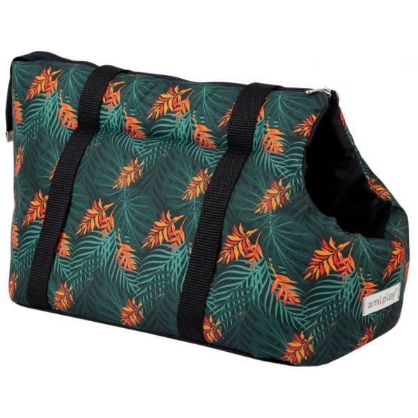 Torba transportowa amiplay BeHappy to doskonały wybór na każdą podróż. Wykonana z wytrzymałej tkaniny poliestrowej w piękne wzory. Jest to materiał wysokiej jakości, zapewniający bezpieczne użycie przez długi czas. Od góry torba zapinana jest na suwak. Dodatkowo po bokach wszyte są pasy, które umożliwiają wygodne noszenie na ramieniu. Uchwyty są optymalnej długości, aby zapewnić komfort użytkowania. W środku znajduje się krótka smycz z karabińczykiem, dzięki której można bezpiecznie przypiąć psa, żeby nie wyskoczył podczas transportu. Wyciągana podłoga sprawia, że torba jest wygodniejsza dla pupila. Ułatwia to także utrzymanie jej w czystości. Dzięki otworowi, przez który pies może wystawić głowę i obserwować otoczenie, stres związany z transportem jest znacznie mniejszy, co korzystnie wpływa na budowanie odpowiednich skojarzeń. Kolekcja BeHappy wyznacza nowy kolorowy trend. Wychodząc naprzeciw oczekiwaniom swoich klientów firma amiplay postawiła na komfort użytkowania i designerskie wzornictwo. To najlepszy wybór dla wszystkich osób lubiących się wyróżniać. Kolekcja BeHappy powstała, by budzić uśmiech! Słodkie, kolorowe wzory w towarzystwie tropikalnych zieleni przenoszą myślami do ciepłych, egzotycznych krain. Doświadczenia w produkcji wysokiej jakości, bezpiecznych i funkcjonalnych produktów, pozwoliło ubrać kolekcję BeHappy w żywe kolory, które pozostaną intensywne przez długi czas. Gładka tkanina poliestrowa zapewnia niezwykłą łatwość czyszczenia. Użyty materiał cechuje się wysoką odpornością na ścieranie oraz uszkodzenia mechaniczne.