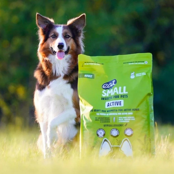 Innowacyjna formuła karmy z insektów EATSMALL Active to kompletna, pełnoporcjowa karma dla psów powyżej 12. Miesiąca życia. Jest to idealne rozwiązanie dla psów wrażliwych, które cierpią na nietolerancje pokarmowe i alergie. Wykorzystanie w karmie insektów, jako źródła białka to całkowita innowacja. Aby w pełni zrealizować zapotrzebowanie psa na białko, wykorzystane zostały owady Hermetia Illucens, które mają wszystkie dwadzieścia aminokwasów, więcej żelaza oraz wapnia niż mięso. Są wyjątkowo bogate w minerały i witaminy, w tym B12. Dodatek w karmie stanowią bataty oraz proso. Karma jest idealnie zbilansowana dla psów o normalnym poziomie aktywności oraz psów sportowych i pracujących. Jest polecana także dla psów wrażliwych oraz z nietolerancjami pokarmowymi. Specjalnie opracowana receptura sprawia, że karma jest smakowita i bogata w składniki odżywcze, które są dobrze przyswajane i prawidłowo trawione. Do hodowli owadów nie używa się hormonów, antybiotyków ani innych modyfikacji genetycznych.