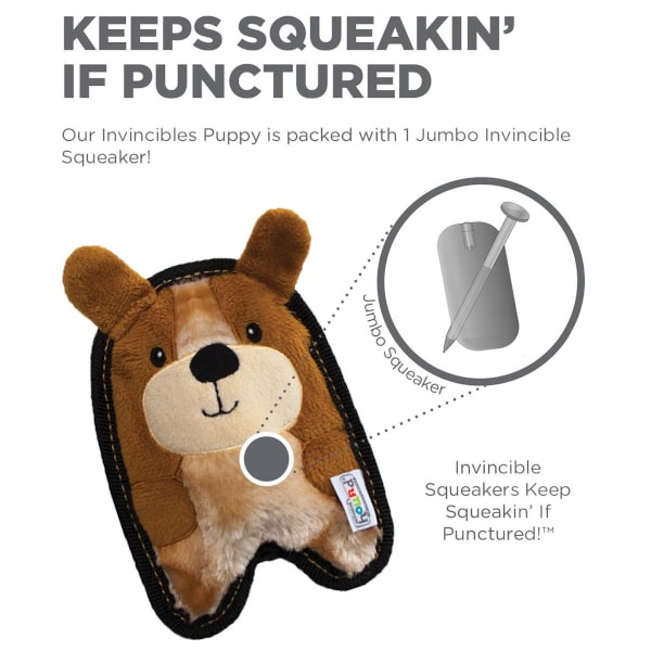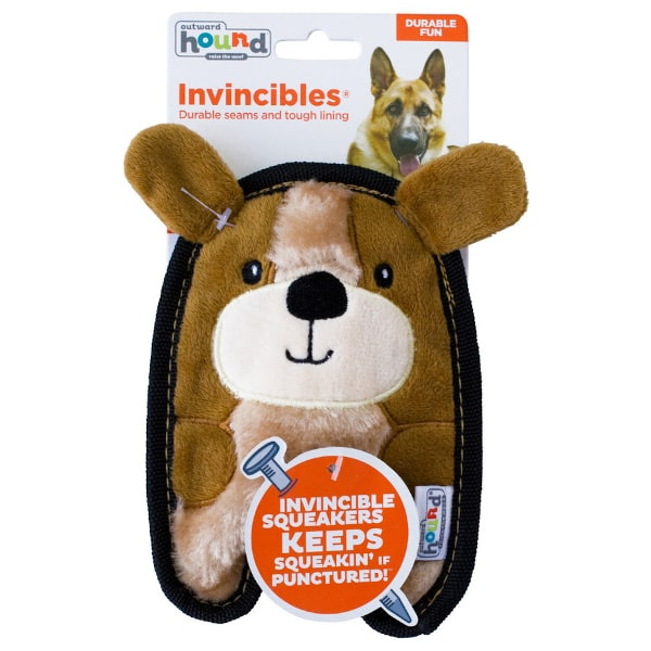 Linia Invincibles firmy Outward Hound została specjalnie zaprojektowana dla psów, które lubią szarpać, rozpruwać i patroszyć swoje zabawki. Te pluszowe zabawki, choć nadal są przytulne i urocze, mają specjalną wewnętrzną wyściółkę Dura-Tuff i dwuwarstwowe szwy zewnętrzne by na długo zapewniać zabawę psu. Zabawka posiada liczne piszczałki, które zaspokoją instynkt łowiecki psa i będą działać nawet po przebiciu.