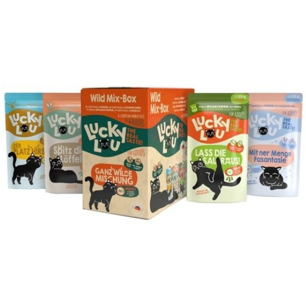 Lucky Lou Lifestage jest karmą pełnoporcjową dla kotów. Nie zawiera zbóż ani cukru. Mokre, wysokiej jakości jedzenie, które przypadnie do gustu kocim smakoszom. arma premium dla kotów, która składa się w ponad 94% z mięsa lub ryb, podrobów i bulionów oraz około 2% węglowodanów roślinnych, 1% składników mineralnych i niewielkiej ilości wysokiej jakości oleju. A ponieważ jest przyjazna kotom, w składzie nie znajdziesz zbóż, glutenu ani dodatku cukrów. Gratka dla fanów prawdziwego smaku!