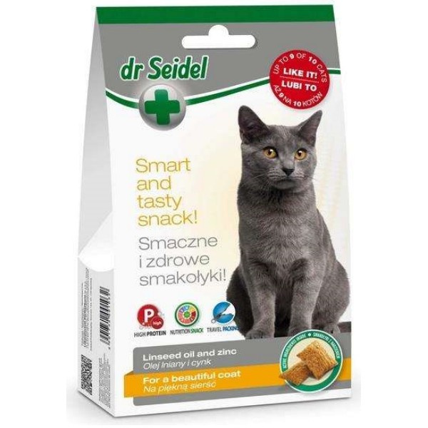 Jedyny na polskim rynku pełnowartościowy przysmak dla kotów wzbogacony o olej lniany i cynk w ilościach odpowiadającym suplementom diety! Olej lniany poprawia wygląd sierści i zapobiega chorobom skórnym. Cynk zwiększa odporność skóry i przyspiesza gojenie się ran. Smakołyki dla utrzymania pięknej skóry i sierści zwierzęcia. Szczególnie polecane w czasie linienia, przy problemach z sierścią i skórą oraz przed wystawami. Doskonała przekąska między posiłkami.