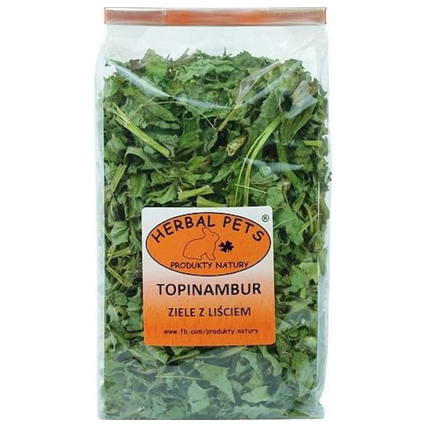 Naturalne zioła Herbal Pets usprawniają pracę układu pokarmowego i dostarczają witamin. Topinambur ziele z liściem wspomaga układ pokarmowy, jest źródłem naturalnych witamin i soli mineralnych. Zapewnia dobre samopoczucie, poprawia trawienie i przyswajanie pokarmów, wzmaga apetyt oraz wspiera optymalną kondycję. Produkty Herbal Pets charakteryzują się wysokojakościowymi składnikami naturalnego pochodzenia.