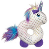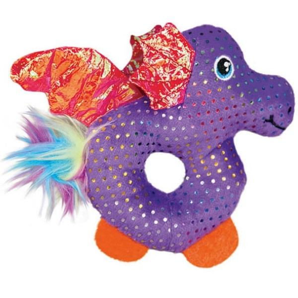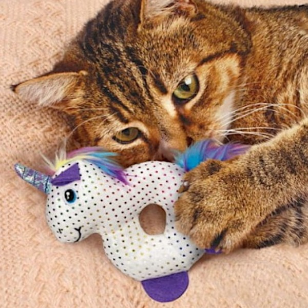 Kong to jedna z najbardziej popularnych firm zajmujących się tworzeniem niezwykłych i dostosowanych do potrzeb zwierząt zabawek. Enchanted Characters to urocze zabawki dla kota zachwycające tęczowymi wykończeniami. Już dziś przenieś swojego kociego milusińskiego do tęczowej krainy beztroskiej zabawy, mitycznych stworzeń, czarów i baśni. Pluszaki dzięki niewielkim rozmiarom dają kotu możliwość ich wygodnego przenoszenia, podrzucania i podgryzania. Doskonale nadają się jako element godny polowania. Dzięki dużemu otworowi najdrobniejszy nawet kociak może wykrzesać w sobie duszę tygrysa. We wnętrzu zabawki umieszczona została szeleszcząca folia, wydając dźwięk, zachęca kota do podjęcia wspólnej zabawy. Dodatkowo wypełnienie kocimiętką sprawia, że Enchanted Characters staje się najchętniej wybierana przez naszego kota zabawką. Kształt zabawki wysyłamy losowo.