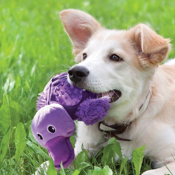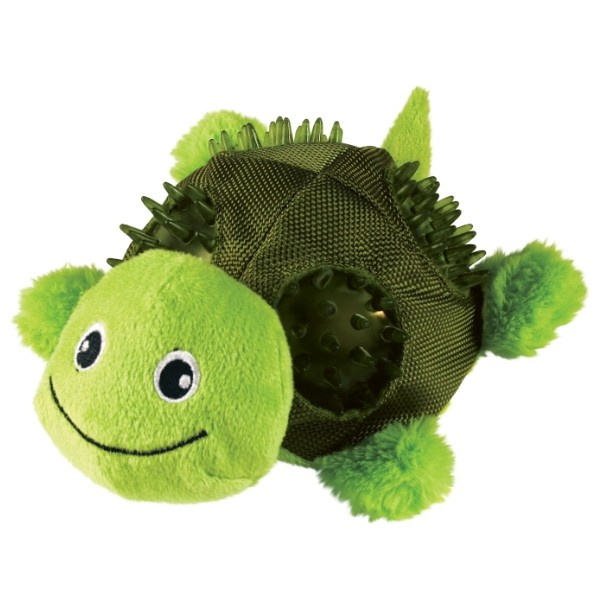Pluszowy żółwik KONG z jeżastą skorupą. Zabawka intryguje psa na wiele sposobów: piłka jeżyk, piszczałka i maskotka w jednej postaci. Wytrzymały i łatwy w utrzymaniu czystości materiał sprawi, że zabawka zapewni zabawę na długie dni!