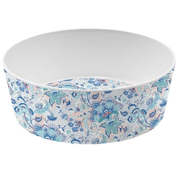 Miska ozdobiona delikatnym wzorem kwiatowym w pastelowych barwach. Wzór umieszczono na zewnętrznej części ścianek miski oraz na spodzie. Miska to propozycja na osób lubiących florystyczne elementy w wystroju domu.