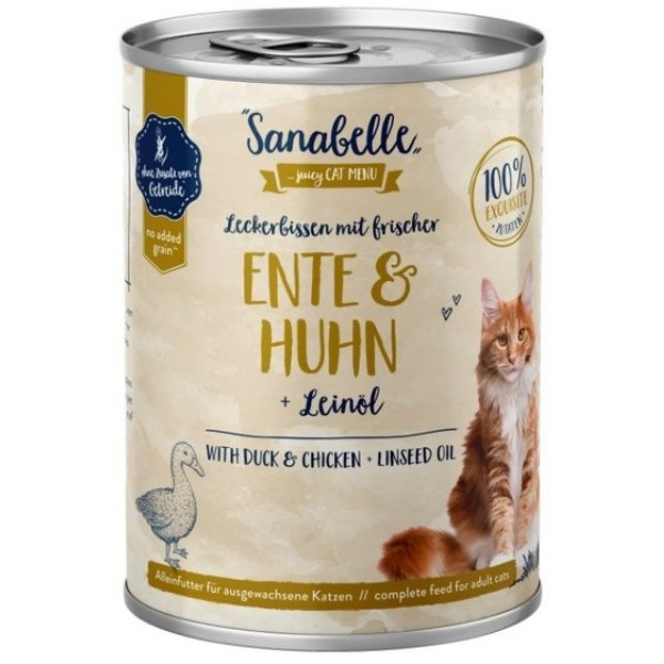 Niemiecka marka karmy z 60-letnią tradycją. Zdrowy pokarm wyprodukowany z wysokiej jakości, naturalnych składników. Bez dodatków syntetycznych. Najwyższa jakość surowców pozyskiwanych z regionalnych źródeł. Kompleksowy system zarządzania jakością. Certyfikat IFS oznaczający produkcję zgodną z normami żywieniowymi. Poznaj markę Sanabelle. Wyjątkowo lekkostrawny posiłek dla wymagającego kota. Dodatkowa porcja oleju lnianego pozytywnie wpływa na skórę i sierść Twojego kota. Zawiera niezbędnej witaminy i minerały, aby optymalnie wspierać zdrowie i witalność Twojego kota. Pyszny, oryginalny mięsny smak i skład. Karma w 100% jest bezzbożowa.