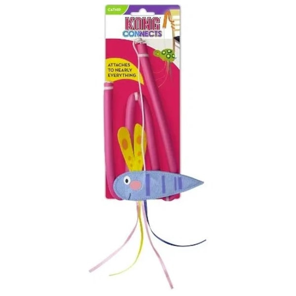 Wędka do zabawy dla kota Kong Connects Benderz Dragonfly. Taka zabawka rozbudzi w kocie jego naturalne instynkty łowcze, rozwinie zręczność oraz koncentrację i pozwoli na wspólną, szaloną zabawę z właścicielem. wędka jest giętka, dzięki temu można ją przymocować do mebli, a sprężyste ruchy zabawki zachęcą kota do zabawy. Kolorowa, dobrze widoczna końcówka na pewno przyciągnie uwagę Twojego kota i zajmie go gonitwą i polowaniem na motyla. Aby dodatkowo pobudzić zmysły zwierzęcia, zabawkę nasączono kocimiętką jakości premium pochodzącą z Ameryki Południowej. Wędka została wykonana z odpornych na zniszczenia, nietoksycznych materiałów. Produkt odpowiedni dla kotów w każdym wieku.