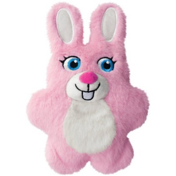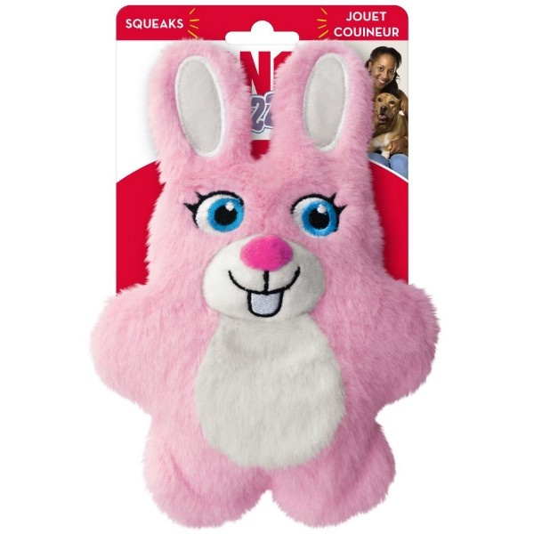 KONG Snuzzles Bunny to średniej wielkości pluszak z piszczałką, przeznaczony dla psów w każdym wieku. Sprawi radość wszystkich pupilom oraz domownikom, ponieważ zaraża uśmiechem i pozytywną energią. Będzie wspaniałym kompanem szalonych zabaw oraz przytulanką przynoszącą wytchnienie po harcach. Aportowanie, szarpanie i podgryzanie - z tym różowym króliczkiem wszystkie sztuczki dozwolone! Jeżeli większość część dnia Twój pies pozostaje sam w domu, ta zabawka umili mu czas i zmniejszy stres związany z rozłąką. Płaski kształt idealny dla małych psów do chwytania.