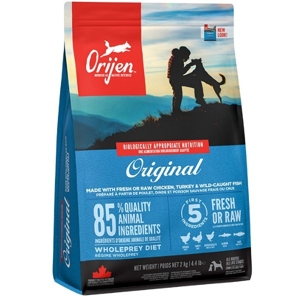 Dlatego nasze nagradzane jedzenie ORIJEN Original charakteryzuje bogactwo różnorodnych mięs w Biologicznie Odpowiednich proporcjach WholePrey, które odżywia organizm psa w najlepszy sposób:
