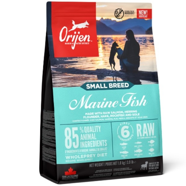 ORIJEN Small Breed Marine Fish to pełnoporcjowe jedzenie dla psów małych ras w wieku dorosłym. Doskonale odżywia mikropsy, zapewniając im zdrowe, szczęśliwe życie.