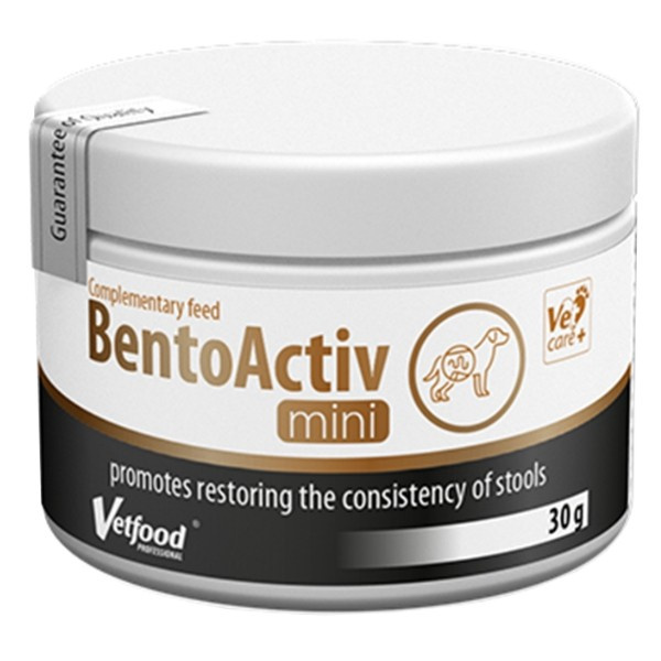 BentoActiv mini to produkt przeznaczony dla małych psów i kotów jako wsparcie w trakcie biegunek i niestrawności związanych z nieprawidłową absorpcją wody w jelitach.