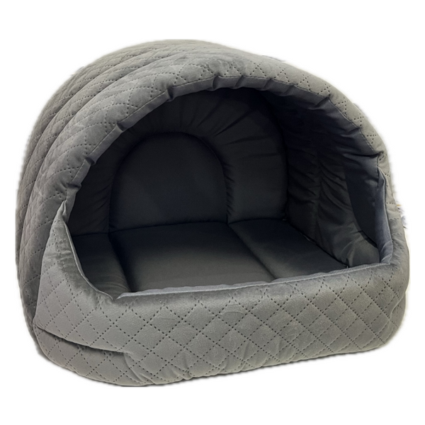 Okrągła budka dla małego psa lub kota, pozwalająca na chwilę wytchnienia i odseparowania się od świata zewnętrznego