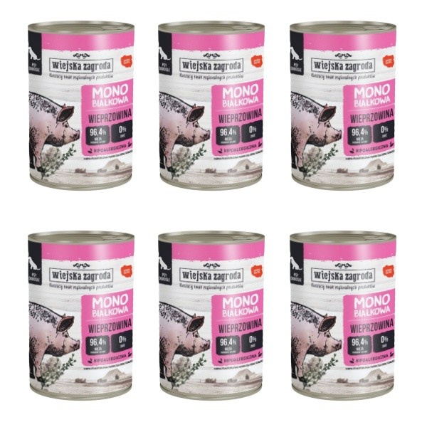 6x Wiejska Zagroda Monobiałkowa wieprzowina dla psa 400 gCena: 10,90 zł / szt.