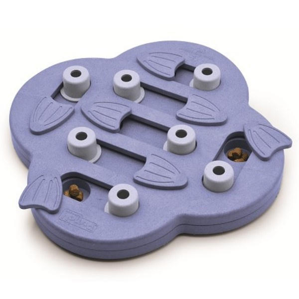 Gra Hide 'N Slide zachęca do swobodnej zabawy w poszukiwanie smakołyków! Zacznij od napełnienia przegródek przysmakami lub suchą karmą. Potem zachęć pupila do eksploracji zabawki. Węsząc i przesuwając łapami lub pyszczkiem dźwigienki skrywające łakocie, twój czworonóg szybko nauczy się odnajdywać ukryte skarby! Zastosowane tworzywo kompozytowe jest drewnopodobne i jest łatwe do czyszczenia, a także dużo bezpieczniejsze podczas zabawy z psem - trwalsze niż drewno.