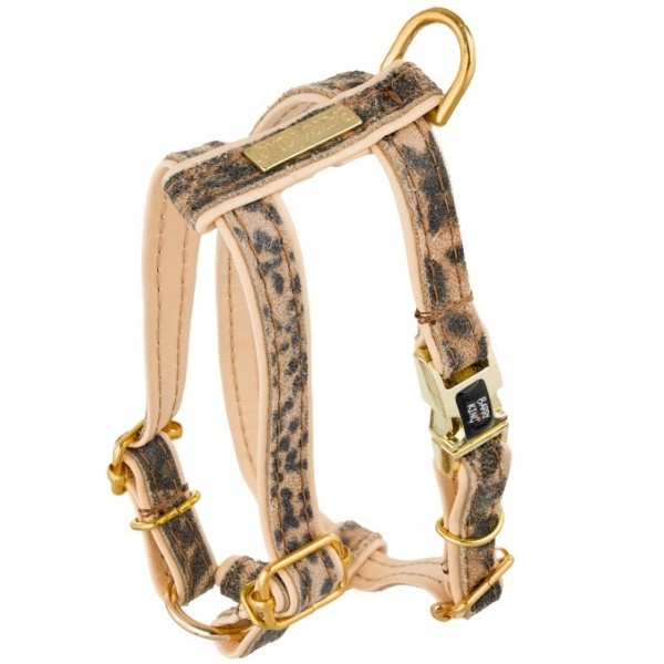 - Szelki dla psa, Wild Cheetah, beżowe, skórzane mosiądz, S 13mm/ob. szyi 25-40cm ob. klatki 35-50cm