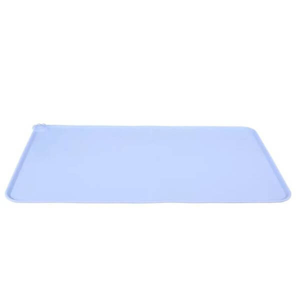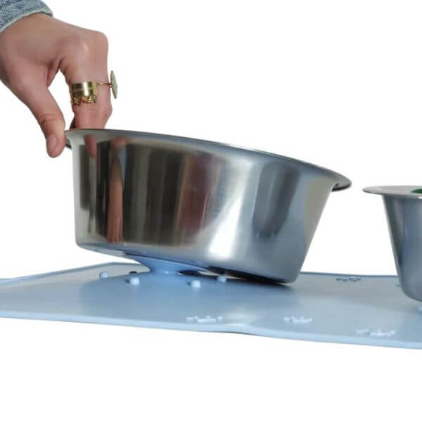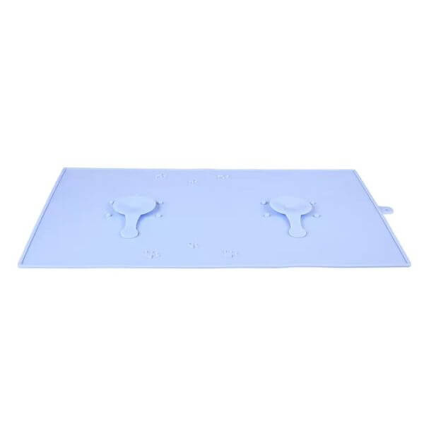 Praktyczna silikonowa podkładka zapobiegająca rozchlapywaniu wody i zabrudzeniom podłogi. Dzięki antypoślizgowej spodniej części, podkładka pozostaje na miejscu, nawet podczas intensywnego jedzenia. Jest łatwa w utrzymaniu czystości, ponieważ można ją myć w zmywarce. Dostępna w dwóch wersjach kolorystycznych: niebieskiej i szarej, oraz dwóch rozmiarach: M i L.