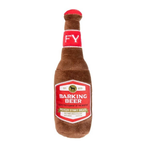 Podaruj swojemu przyjacielowi Barking Beer i obserwuj, jak skacze z radości! Ta pluszowa butelka stanie się ulubioną zabawką Twojego pupila. Super miękka i przyjemna w dotyku zabawka od FuzzYard, wyposażona w piszczałkę i szeleszczący papier, gwarantuje niekończącą się rozrywkę. Dzięki swojej unikalności i atrakcyjnemu designowi, zabawki FuzzYard zdobyły popularność wśród psów na całym świecie.