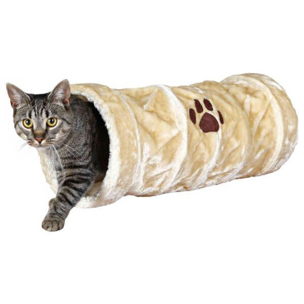 Tunel Trixie nieustannie zachęca kota do zabawy, wszystko to dzięki swoim szeleszczącym elementom, które podczas poruszania się wydają charakterystyczny, prowokujący do zabawy dźwięk. Po skończonej zabawie tunel może posłużyć jako miejsce do odpoczynku. Szary kolor jest miły dla oka i wkomponowuje się do niemalże wszystkich nowoczesnych mieszkań.