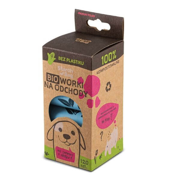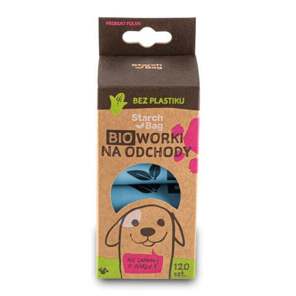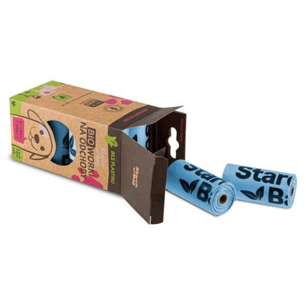 - Biodegradowalne worki na odchody dla psa StarchBag 8 rolek x 15 szt., kol. błękitny