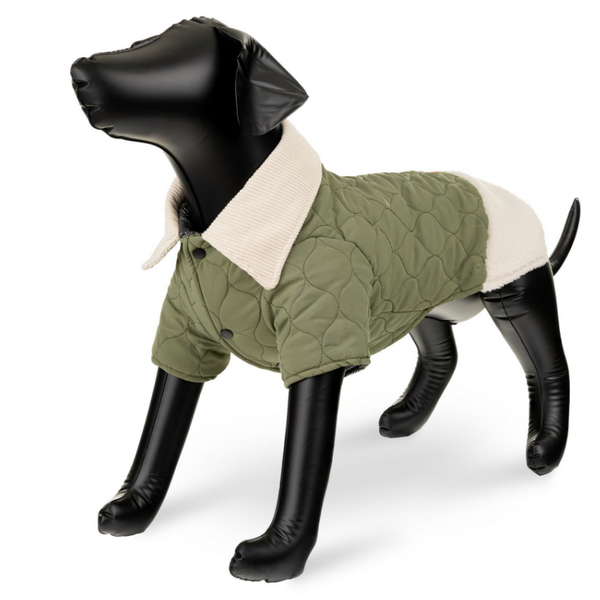 Barry King prezentuje stylową i praktyczną pikowaną kurtkę dla psa, idealną na chłodne jesienne i zimowe dni. W eleganckim oliwkowym kolorze, z wywijanym beżowym kołnierzem ze sztruksu, ta kurtka nie tylko zapewnia ciepło, ale również dodaje szyku każdemu spacerowi. Dzięki starannie dobranym materiałom Twój pupil będzie dobrze chroniony przed zimnem i cieszył się pełnym komfortem. Kurtka doskonale sprawdza się w codziennym użytkowaniu, jak i podczas aktywności na świeżym powietrzu.
