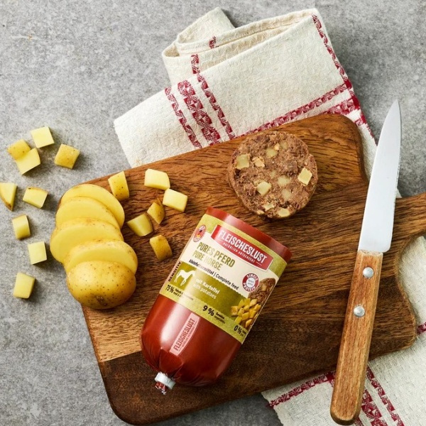 Konina z ziemniakami składa się z tylko jednego źródła białka zwierzęcego, które stanowi 75% najwyższej jakości mięsa i podrobów koni, a także z pojedynczych węglowodanów i obniżonej zawartości tłuszczu. Wybrane, łatwo przyswajalne składniki są szczególnie odpowiednie dla psów wrażliwych na żywność. 9% chrupiącego warzywa, wzbogacone przez wysokiej jakości olej rzepakowy bogaty w kwasy tłuszczowe omega-6, sprawia, że nasza wrażliwa karma pełnoporcjowa jest naturalnie dostosowana do potrzeb.