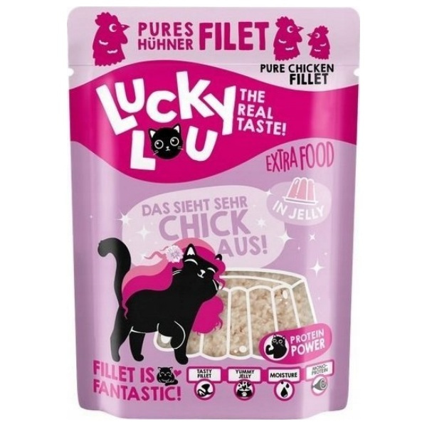 Koty, lubią być rozpieszczane. Też lubisz od czasu do czasu prawdziwą ucztę, prawda? Dokładnie tak samo jest z kotami. Kochają dodatki! I dlatego do linii karm mokrych dodaliśmy Lucky Lou Extra Food. To soczysty filet przygotowany w galarecie lub w bulionie. To jest ekstra pyszne!