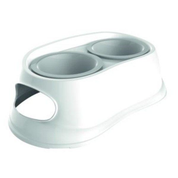 - Wygodne użytkowanie: Odpowiednia wysokość i szerokość misek umożliwiają komfortowe jedzenie i picie dla zwierząt małych i średnich ras.